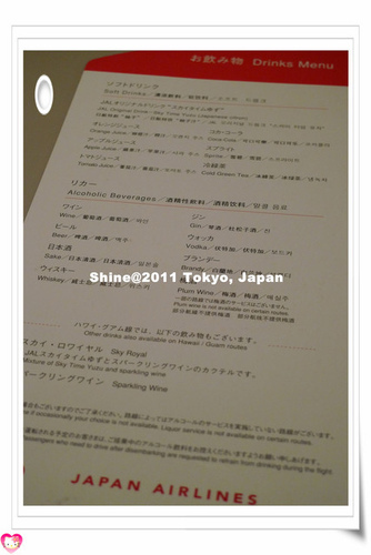 JAL還有特別提供飲料MENU讓大家選擇~好棒喔!